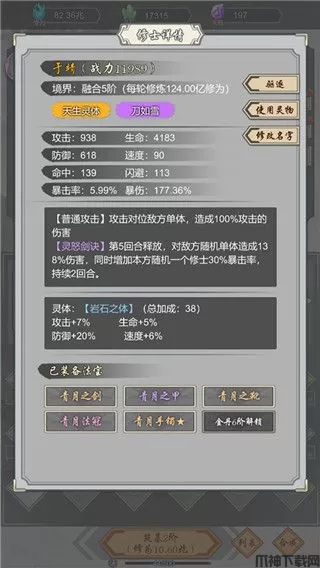 6、属性随机、多品质的法宝/灵体,搭配随机领悟的功法,可培养自己独特的修士。