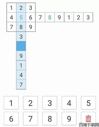 2、在九宫格中,填入一个数字,要求不能与其所在九宫格的其他数字相同。
