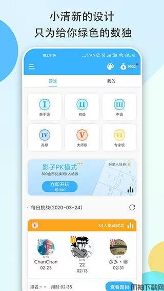 数独大本营是一款干净的、带云存档的、有排行榜的,多人精品免费数独游戏,其界面采用小清新风格,支持自定义背景,支持多种主题任意切换。
