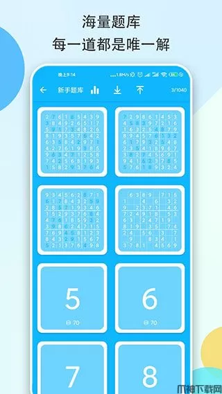 数独大本营是一款干净的、带云存档的、有排行榜的,多人精品免费数独游戏,其界面采用小清新风格,支持自定义背景,支持多种主题任意切换。玩法上,数独大本营游戏模式多样,提供PK模式、挑战模式、做题回放模式、云存档模式以及排行榜等多种模式,且在难度上也分为新手级、初级、中级、高级、大师级、专家级,可充分让玩家体验数独的魅力。操作上,数独大本营游戏简单易上手,它内置了详细的新手入门指南,助你了解数独并完成关卡挑战!