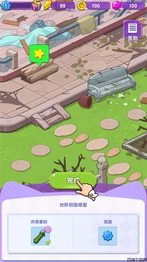 4、刚进入游戏我们的房屋是非常的乱的,所以还是需要不断的合成来获得工具,从而来改善自己的房子;