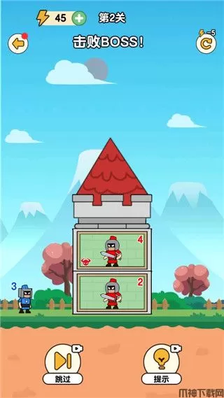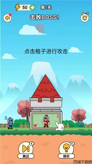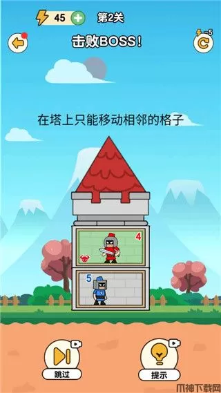 6、在塔上只能移动相邻的格子,将BOSS击败之后便可过关,除此之外,游戏中还有很多玩法等着玩家们自行下载体验。