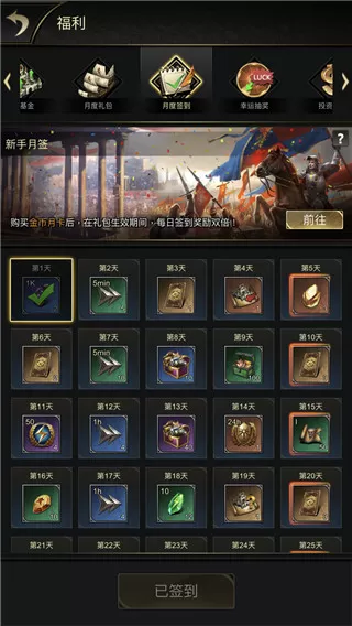 连续签到30天可免费领取到高级英雄招募卡以及精力、VIP经验、大量加速器、大量资源等一系列丰厚奖励