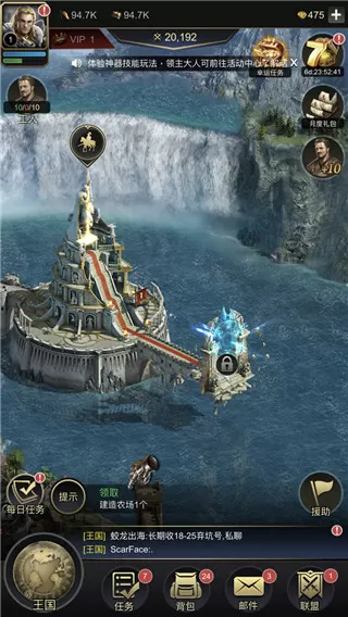 3、每日任务:每天必做的任务,城堡等级越高,奖励越多;