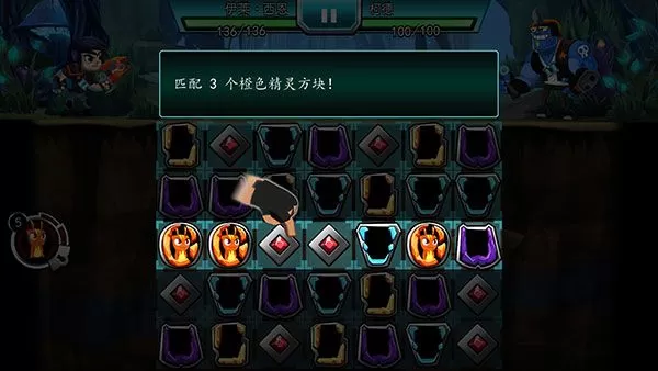 4、游戏的玩法跟普通消除游戏累次,我们需要匹配3个橙色精灵方块,将另一个橙色精灵方块移到前面二个橙色精灵方块一起。