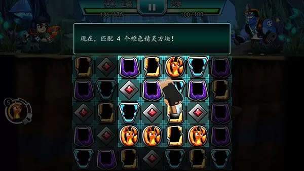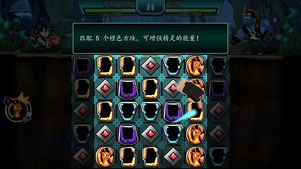 5、现在,匹配4个橙色精灵方块!将会有惊喜哟