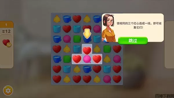 4、进入消除关卡中会消耗一颗爱心,而减少的爱心会随着时间恢复,爱心耗尽将无法挑战。
