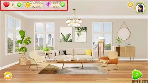 3、装饰和三消相结合的玩法,不断完成消除关卡获得金币以及钻石奖励装饰房间。