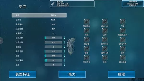 4、点击上方的DNA图标,玩家可以自行配置细菌的属性。