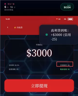 借贷一次可消耗6小时。