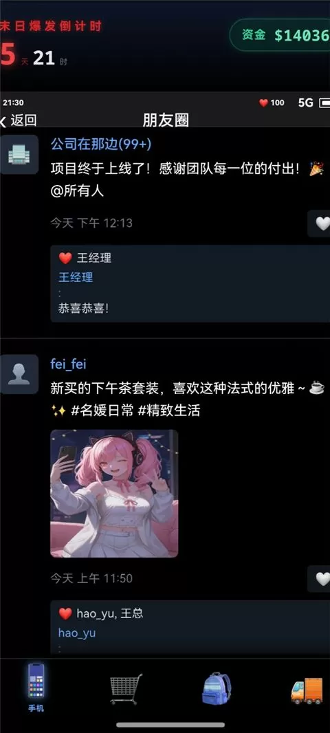 独创“末日朋友圈”系统。面对前女友的复合请求、亲戚的道德绑架、老板的画饼充饥……你可以选择拉黑,也可以选择发一张“炸鸡配可乐”的照片,收割他们的情绪值!