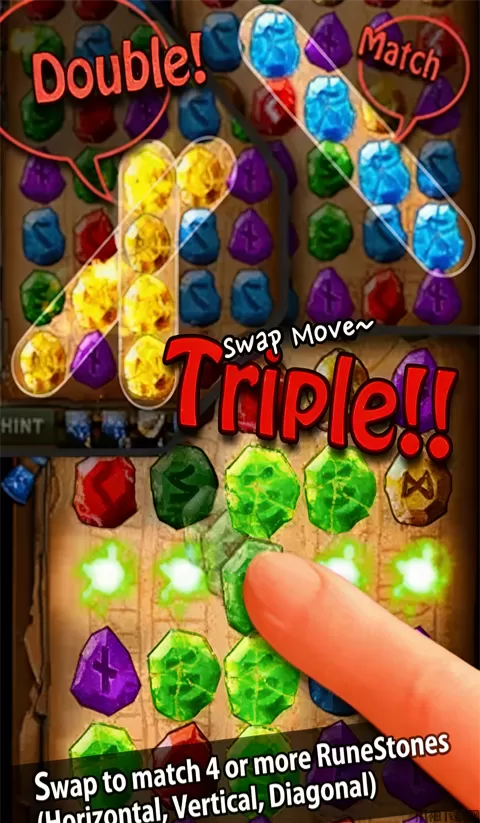 12、item X3可以让你的道具数目变成原来的三倍。其实符文大师主要获得高分的方法就是利用连锁消除加上积分增加类道具。而这之前一定要你仔细研究,不要怕移动很多步。因为一旦你组成了连锁消除,然后加上道具,得到的回报绝对是客观的。