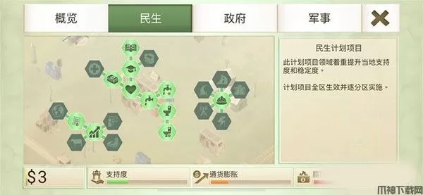 5、游戏极度烧脑,高度自由,获得人民支持,增强军事力量,是你平反战乱,取得国家安宁的最重要因素。