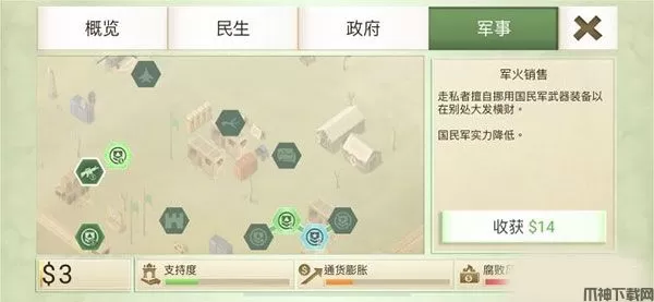 然后点击“军工企业”,用国民警卫队赚钱。(长者:军队一律不许经商!)