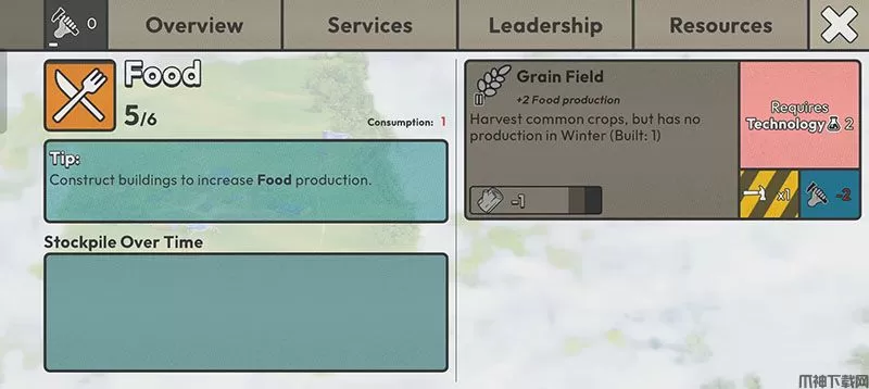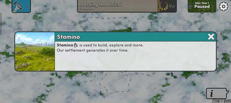 2、体力(stamina)用于建造、探索等。定居点会随着时间的推移产生体力。