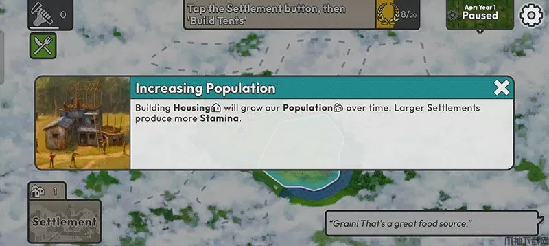 7、随着时间的推移,建造住房将增加我们的人口。更大的定居点产生更多的体力。