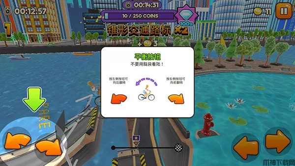 4、点击左下角按钮可以控制车辆的翻转和平衡,注意不要脑袋着陆。