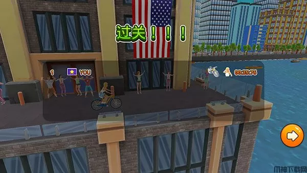 1、以自行车竞速为主题。需要玩家运用十分娴熟的自行车骑行技术。