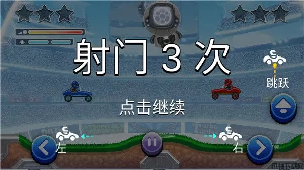 1、这款游戏玩法非常的简单,玩家和别的玩家分别驾驶着汽车,然后把足球送到球门里即可,非常的简单。
