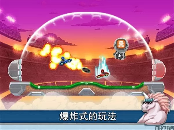 撞头赛车2足球ios版是一款赛车与体育双结合、非常经典又好玩的动作类竞技小游戏。同时也是《撞头赛车》系列的全新续作。游戏中其不仅完美延续了前作经典独特的卡通像素风格设计,整体UI界面精美细腻。并且还在原经典的赛车玩法为基础上,新增了如足球、篮球、排球、冰球、橄榄球等多种玩法,多个模式于一体,提供了海量丰富的关卡挑战、各种不同场景、搭配多款独立的赛车造型和赛车手速度、重量及操控的培养,可让你尽情的感受到更具魅力色彩的赛车冲撞体验之外。并且撞头赛车2足球ios版游戏中每一场比赛的场地都是随机产生的,每一个场地也都有其不同的特点,例如有的场地是在浮在空中的两个铁架上,而有的则是在一座四面环海的小岛上等,也在一定程度上增强了游戏挑战性。让大家可以在各种环境中与全球玩家进行1v1的对决较量,并通过竞技对决获得升级车辆的工具和零部件,精进你的技术,让角色升级更厉害哦!