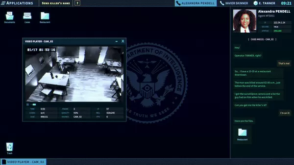 1、为外勤特工提供支持:当外勤特工需要协助时,会及时呼叫你。请帮助他们完成包括确认线索、搜寻数据库,指认凶手等在内的各项后勤工作。每个案件都会提供需要你分析评估的证据,而你的职责则是调查卷宗,串联线索并最终破解案件中的疑团。