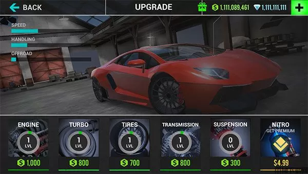 2、可以对赛车每一个部件进行升级,提高赛车性能;