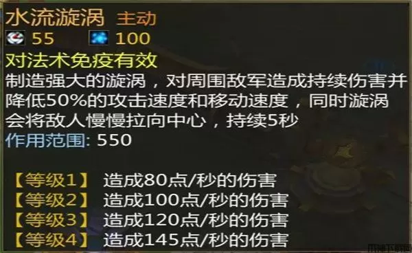 5、梦*甘宁的四技能是一个控制技能,制造一个面积很大的漩涡将敌人拉向身边。