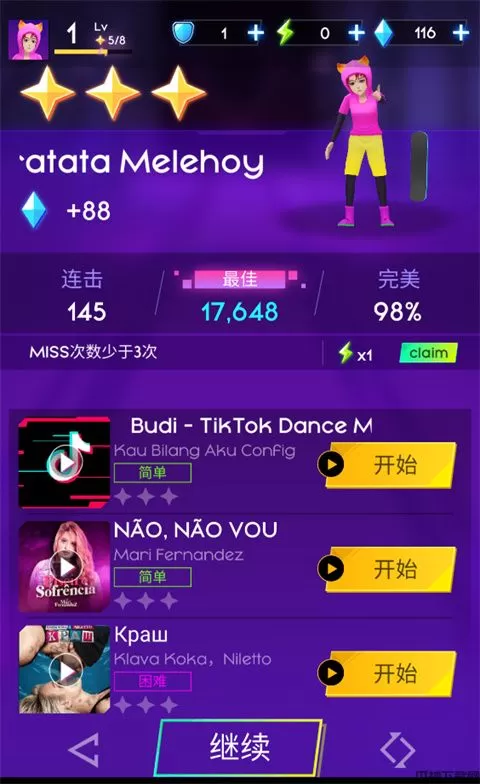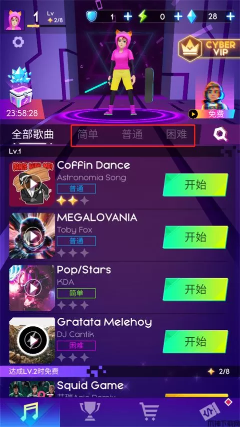 2、选择好难度后即可选择音乐,点击开始即可开始闯关;