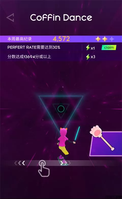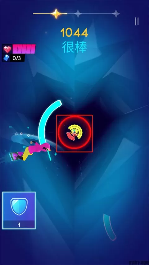 7、当玩家遇到带有颜色的光环就需要注意了,这是玩家需要击打的颜色会发生改变,击打的颜色就是光环的颜色;