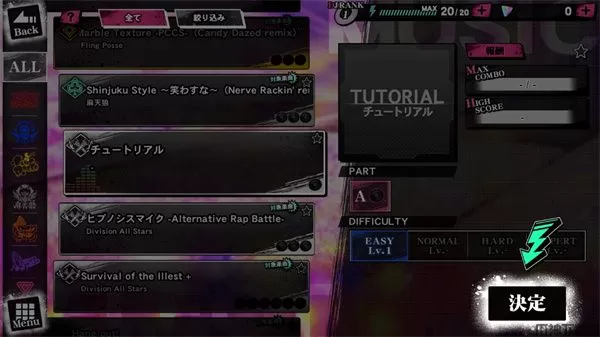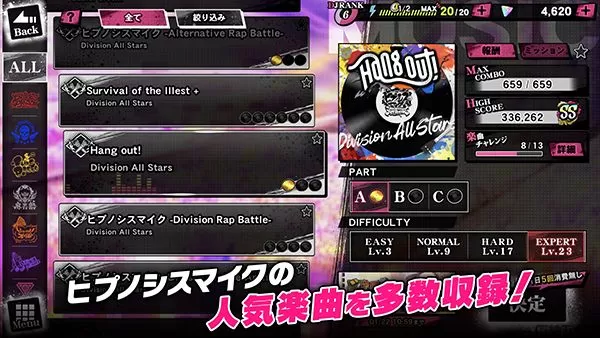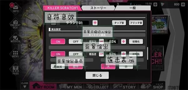 同时游戏在玩法上游戏遵循了多数“下落式音游”的玩法,结合嘻哈元素里的电子音乐元素,整个界面活像一个打碟机。催眠麦克风手游不同于其他音游对于人物或者偶像演出的展示,该作中随着音乐节奏变化而蹦出的涂鸦画面,人物立绘等元素加重玩家在演奏游戏时的代入感以及氛围的渲染。