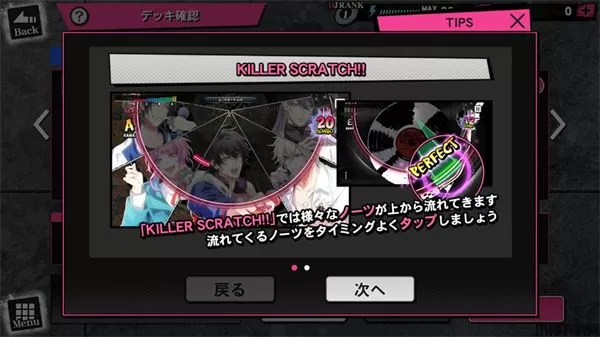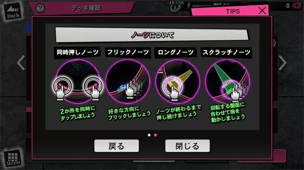 9、期间我们会碰到不同的按键,需要同时点击两处,朝着指定方向滑动,一直按住直到下落的按键结束,跟随按键进行移动;