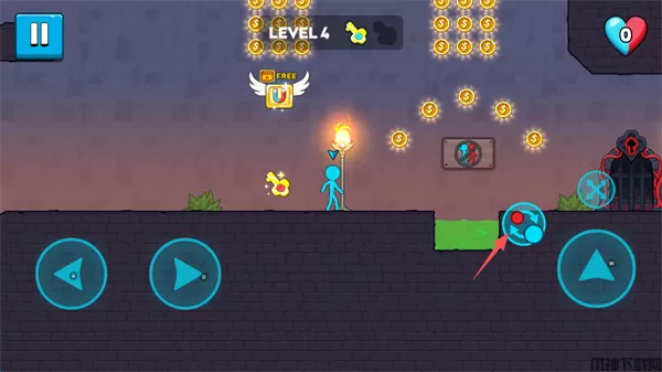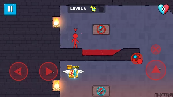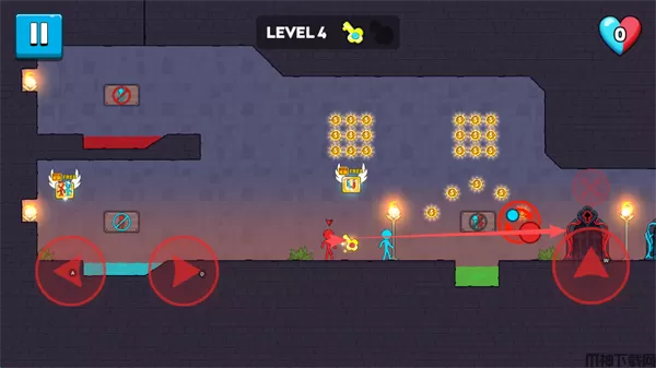 冰火火柴人是一款横板闯关游戏,游戏采用火柴人风格,色彩鲜明。