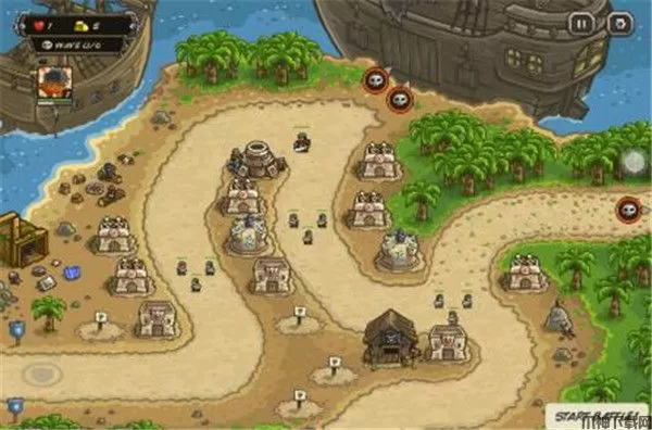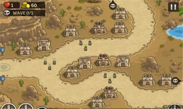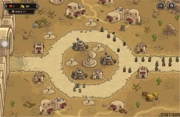 攻略:中央先造3个炸弹塔,三角排列,增援冷却即用,个别漏网的别紧张,后部有一个NPC箭塔会帮你解决,有钱了就在中央补步兵塔,先补上面或者下面,然后是后面,配合增援兵力就轻松守住了,有钱了就酌情补个炸弹塔,最后1小波敌人需要用增援兵力隔断阻挡一下即可