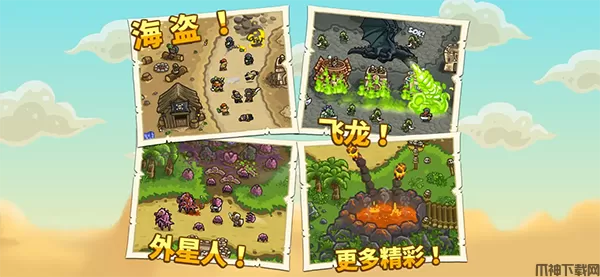 3、游戏丰富的主题场景,多种多样的小兵设计也是游戏的另一大亮点