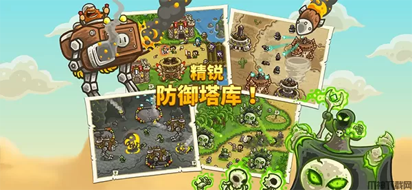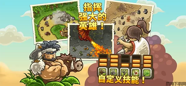 1、建筑:游戏中有4基本建筑:箭塔、法师塔、兵营和火炮塔。每种建筑都可以进行升级,当升到第四级时,出现转职选项,可以二选一。升级到高级建筑后,还可以配备2至3种专属技能