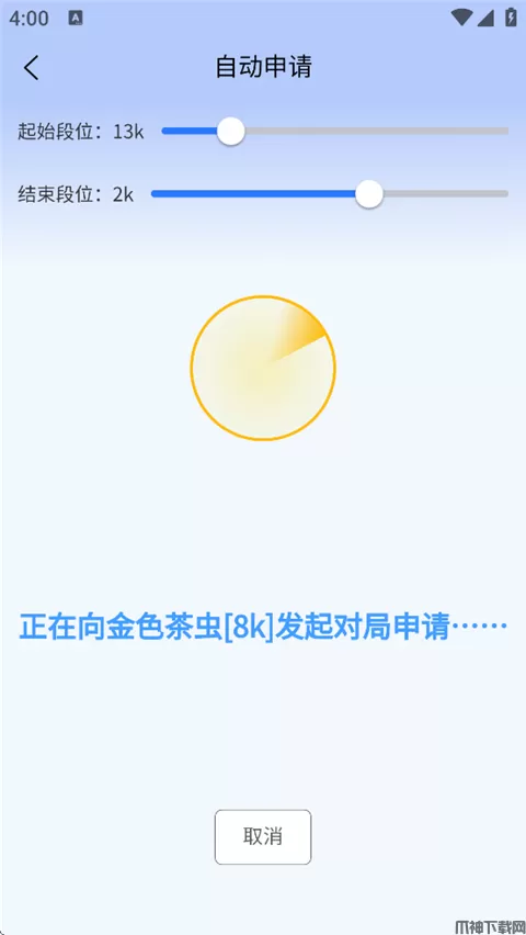 3、游戏匹配到后,自动向他发送对局申请。