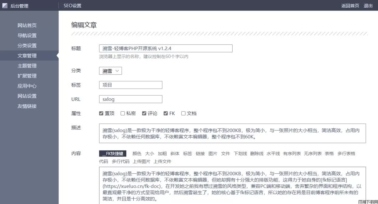 核心由fk标记语言支持,具有强大的排版功能,无需使用任何富文本编辑器