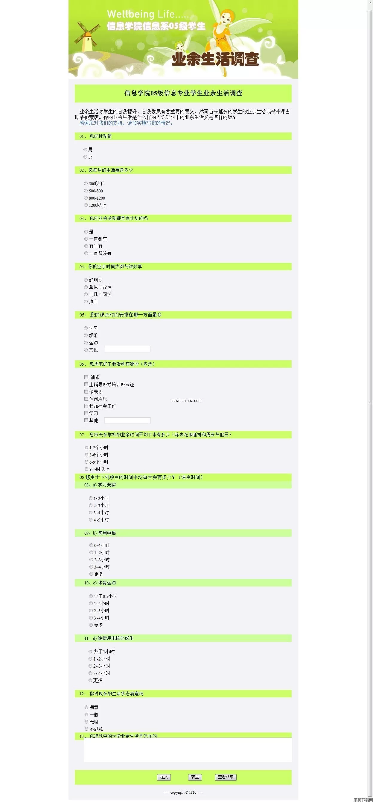 学生业余生活调查系统asp.net源码
