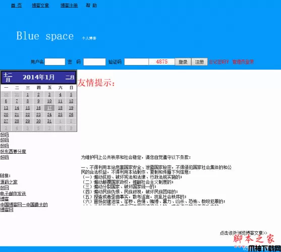蓝色空间简单个人博客系统 asp.net版 1.0,简单的个人博客系统,可以注册会员,对博客进行评论,博客发表,后台可以管理用户