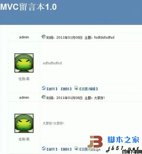 asp.net下mvc2架构的留言本源码 v2.6,1增加了留言管理增加了搜索功能.2评论留言时记录评论时间,评论后可以查看到评论时间.3修改了分页,调用了一个分页类.4统计会员帖子数量(留言数量+评论数量)5增加会员管理(功能只有一个,删除会员,删除会员后会删除关于会员的留言和评论,会员留言中的所以评论也会