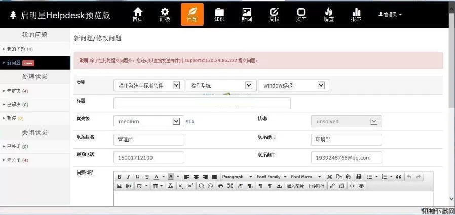 启明星IT报修与资产管理系统Helpdesk v36.0,启明星IT Helpdesk系统是一套适合IT使用的问题(Tickets)管理系统域资产管理系统,欢迎需要的朋友下载使用