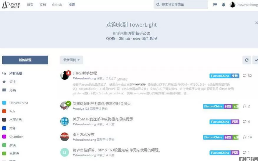 Flarum是使用php+MySQL进行开发的论坛类网站。 Flarum是新一代论坛软件,它使网上讨论变得乐趣。它简单,快速,而且免费。它使论坛变得简单。 环境要求: 需要PHP5.5+和MySQL5.5+ 特点: flarum是充满创新的,体现在这美丽简洁的设计。 她不只是一个漂亮的皮肤。 她是论坛软件的重启,的文艺复兴。 不臃肿、不复杂、不过度依赖。几分钟之内构建属于自己的社区。 Flarum 基于 PHP 构建,因此很容易安装部署。界面使用 Mithril 构建,Mithril 是一个高性能的 JavaScript 框架。更少的等待,更多的交流。 精美的响应式布局 如果 Flarum 的桌面版界面没有打动你的心,那么他的移动版一定会的。Flarum was born to be touched. Flarum 不仅仅为程序员开发,而是为所有人开发的。Flarum 在设计之初就考虑了跨平台,开箱即用。并且 Flarum 的界面风格使用了 LESS,这样很容易更换主题。 强大 简约,并不简陋。 定制性、可扩展性,都集成在了 Flarum 中。 构建可扩展的软件是很困难的。值得庆幸的是,我们有多年的开发 esoTalk 和 FluxBB 的经验。Flarum 的开源架构是非常灵活的,他拥有完善的 API 和文档。