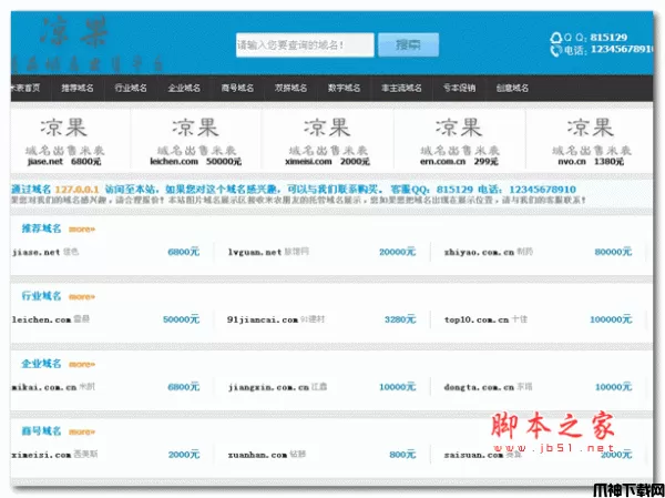 凉果域名米表展示系统 v1.0,本版本是免费放出,如果你是购买来的 那么你就被骗了!还有这程序内核其实不是什么namecms 而是dedecms改的,所以因为法律版权请必须保留官方的dedecms链接