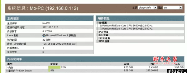 phpSysInfo 显示主机系统信息的PHP脚本 简体中文汉化版 v3.0.19,phpSysInfo是一个能够显示主机系统信息的PHP脚本