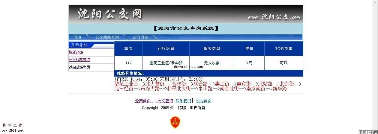 本系统采用结构化设计的方法来实现系统总体功能,提高系统的各项指标,即将整个系统合理的划分成各个功能模块,正确地处理模块之间和模块内部的联系以及和数据库的联系,定义各模块的内部结构,通过对模块的设计和模块之间关系的系统来实现整个系统的功能前台主要有3个模块,线路查询、站点查询、公交换乘模块和后台管理模块功能名称:线路查询功能概述:可以获得要查询公交所通过的各个站点。功能名称:站点查询功能概述:通过输入的指定站点查询经过该站点的公交。功能名称:公交换乘查询功能概述:分为公交直达、公交一次换乘,主要体现那些不可直达需要转车的路线的所有换法。(如果用户输入的起始点和终点,有一条及一条以上的公交线可以直达的,则为公交直达;如果输入的起始点和终点,没有一条公交线可以直接到的,系统将会给出一次换乘的方案,则为公交一次换乘)功能名称:后台管理功能概述:用于管理员登陆,添加、修改、删除公交线路,修改信息资料、安全密码,回复留言板等功能。本系统提供了的车次查询功能、路线查询功能。乘客可以方便的进行查询,以防乘错车次。当然有些功能的智能化不是很强,系统有待进一步来完善。