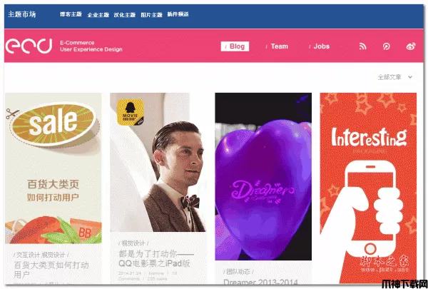 wordpress主题 仿腾讯EDC瀑布流主题 wordpress主题市场 :仿腾讯EDC是一款wordpress瀑布流图片主题,简洁大气,粉红色调,适用范围广!是一款非常潮流的wordpress图片主题。顶部导航有SNS按钮,wordpress图片主题兼容性良好,配置和设置也简单。