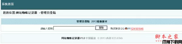 网站蜘蛛记录器是由蓝途工作室独立开发的又款免费程序.主要功能是记录各大搜索引擎对网站采集情况.实时记录百度,谷歌蜘蛛的爬行轨迹,分析.达到更好的优化网站的目的。 程序模块: 系统首页:管理员登陆后台首页,显示系统的常见信息 系统配置:对程序的重要数据进行配置 蜘蛛配置:自定义蜘蛛数据,添加,编辑,删除蜘蛛 日志列表:这是重点,查看,搜索,删除蜘蛛的爬行记录.用户的访问记录也被记录的 修改密码:修改管理员的密码,建议8位以上的字母加数字 功能说明:程序的说明 退出后台:管理员退出后台