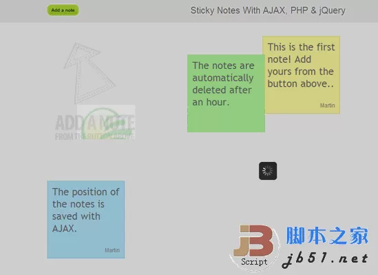 PHP+Mysql 老外写的类似祝福墙的Ajax程序,老外写的类似祝福墙的Ajax程序,PHP+Mysql,发表一句祝福会出现一个方格,每个方格都可以拖动,程序是在国外的AJAX网站下载的,是一个学习PHP+Ajax数据库操作的实例,因此只实现部分功能,无后台,无安装程序,手动配置数据库,导入SQL即可运行。效果图如上。