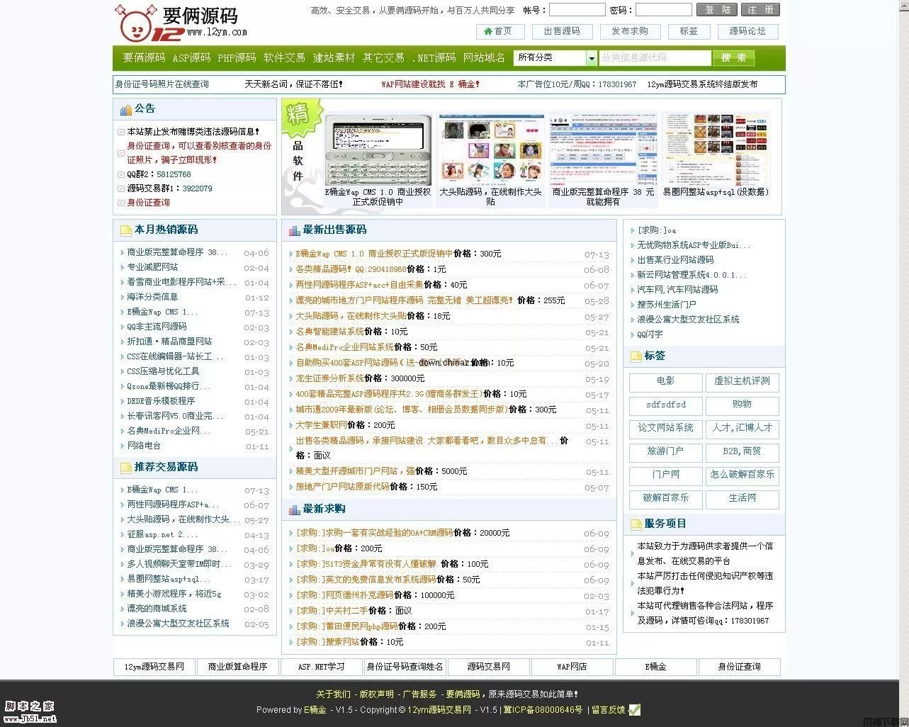 E桶金源码交易系统 v1.5 ,E桶金源码交易系统(12ym源码交易系统的升级版本),由E桶金(http://www.etongjin.com)设计、开发。它致力于为源码、网站、虚拟货币等网络产品提供高效、安全的交易平台。整个系统采用asp.net2.0 + access开发特点:为源码交易量身定做的系统,非常适合虚拟商品的