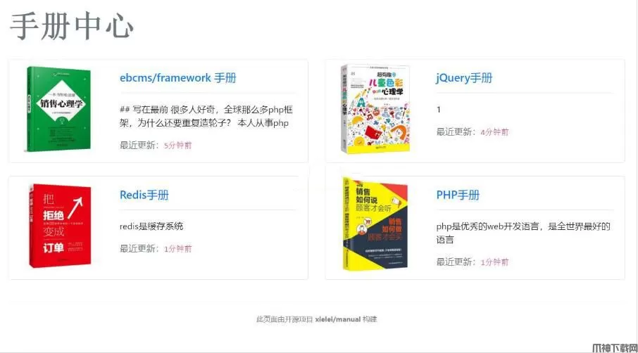 易贝文档写作阅读平台采用php+mysql开发,使用非常流行的markdown书写,开源免费。
